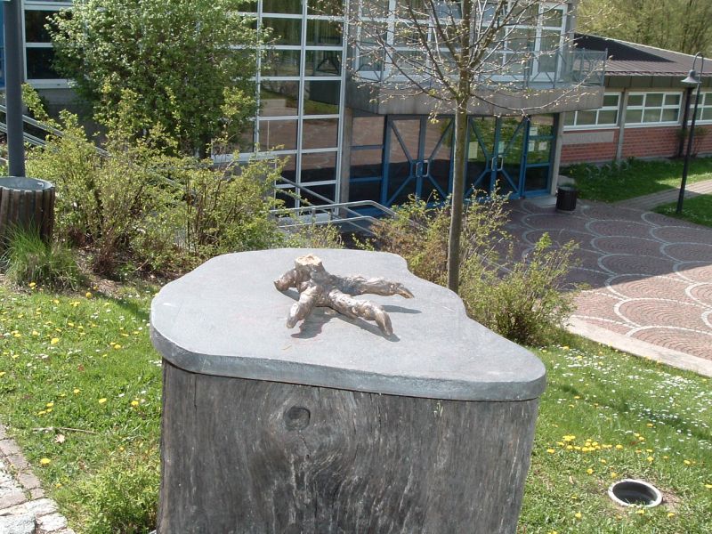 Oktober 2002: Reinhold Brehm wendet sich an den aus Keilberg stammenden Holzbildhauer Konrad Franz, um ihn für die Gestaltung eines Kunstwerkes aus einem Balken zu gewinnen.